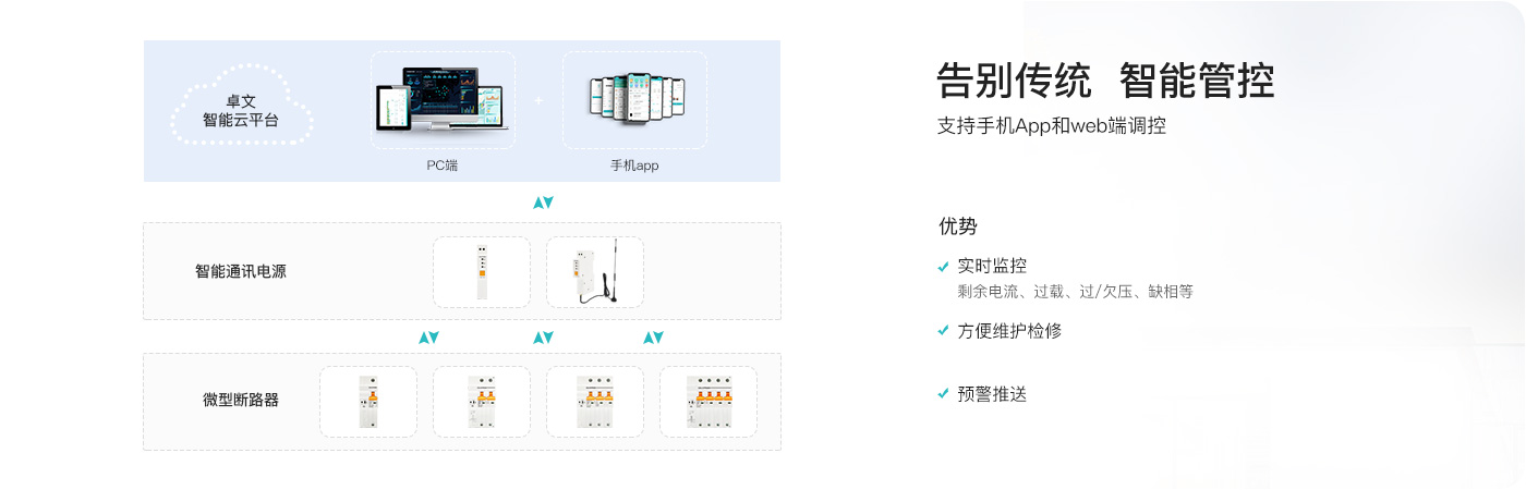 智能通讯电源设备是连接智能融合微型断路器和云端平台之间的通讯传输器,有通讯管理、数据传输、协议转换、数据处理转发等功能,是星空·综合体育智慧用电通信系统的心脏。智能通讯电源采集微型断路器的数据,把数据高效、安全的上传至平台,同时支持平台对设备远程控制指令下发。发挥设备物联,节能降耗,智慧化管理的作用。